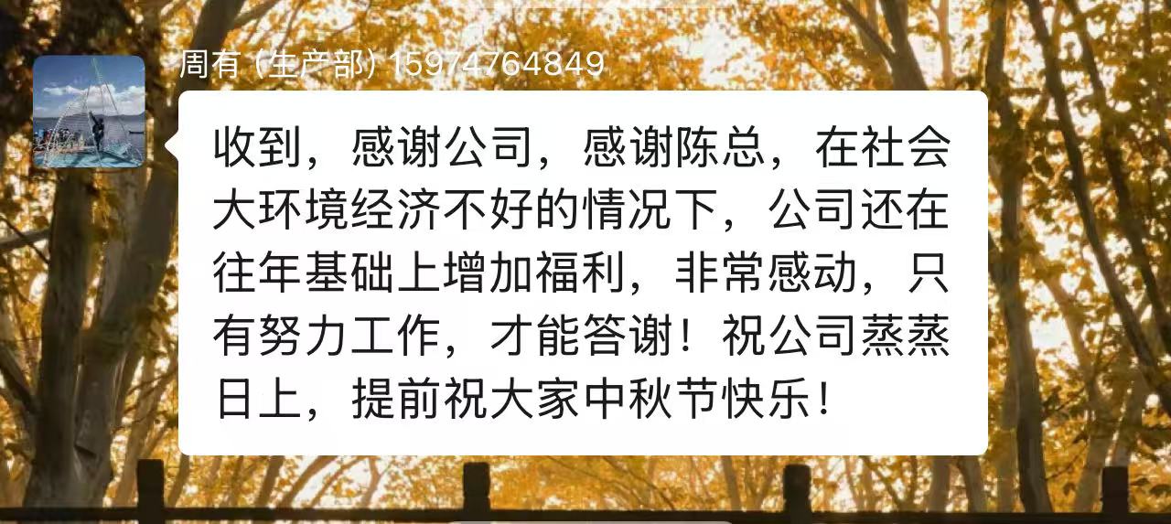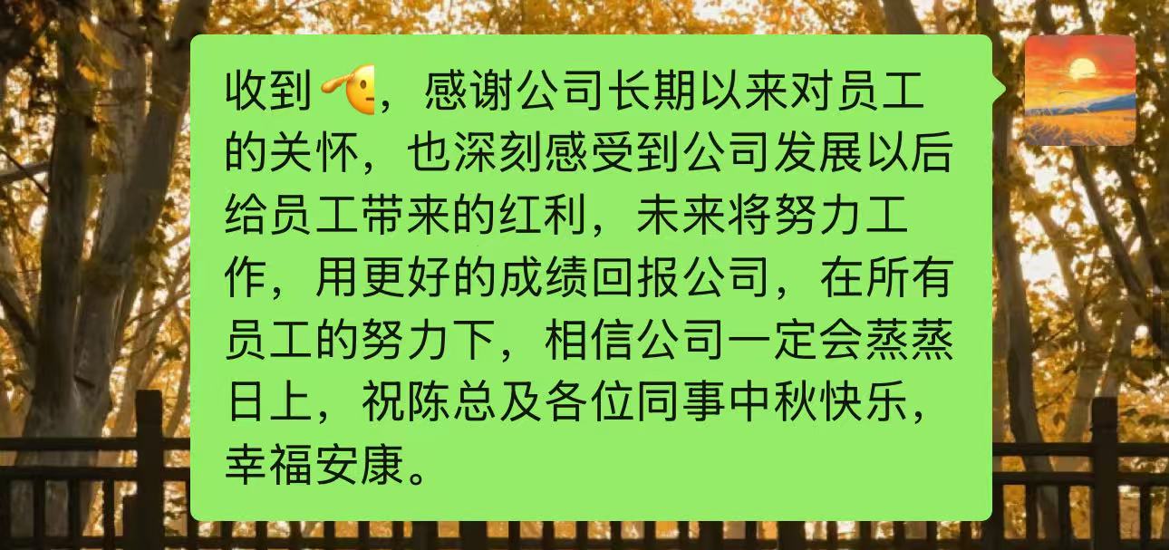 公司董事長(zhǎng)、總經(jīng)理陳喬保先生表示:“企業(yè)的成長(zhǎng)離不開每一位員工的辛勤付出。當(dāng)公司不斷發(fā)展,我們也應(yīng)當(dāng)主動(dòng)將發(fā)展成果回饋給員工?!贝舜胃@傤~近30萬元,是公司對(duì)全體員工的能力肯定,也是對(duì)“發(fā)展源于員工拼搏奮進(jìn),成果主動(dòng)與員工共享”理念的生動(dòng)詮釋。